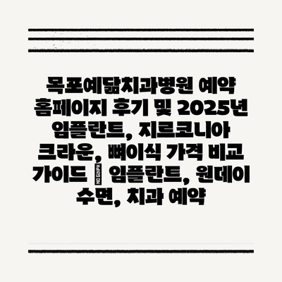 목포예닮치과병원 예약 홈페이지 후기 및 2025년 임플란트, 지르코니아 크라운, 뼈이식 가격 비교 설명서 | 임플란트, 원데이 수면, 치과 예약에 대해 자주 묻는 질문 TOP 5