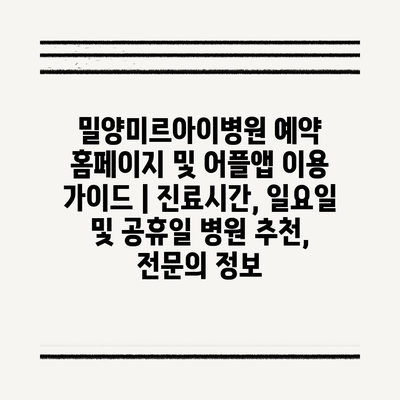 ✅ 밀양미르아이병원의 예약 방법을 상세히 알아보세요.