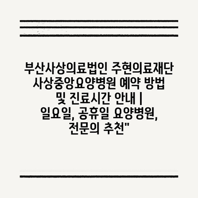 부산사상의료법인 주현의료재단 사상중앙요양병원 예약 방법 및 진료시간 공지 | 일요일, 공휴일 요양병원, 전연락 추천”에 대해 자주 묻는 질문 TOP 5