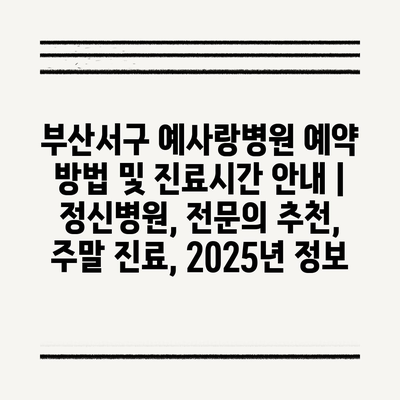 부산서구 예사랑병원 예약 방법 및 진료시간 안내 | 정신병원, 전문의 추천, 주말 진료, 2025년 정보