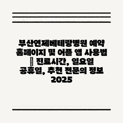 ✅ 부산연제베테랑병원의 진료시간과 예약 방법을 자세히 알아보세요.