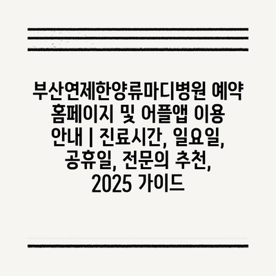 부산연제한양류마디병원 예약 홈페이지 및 어플앱 이용 안내 | 진료시간, 일요일, 공휴일, 전문의 추천, 2025 가이드