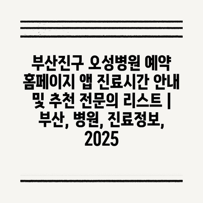 부산진구 오성병원 예약 홈페이지 앱 진료시간 공지 및 추천 전연락 리스트 | 부산, 병원, 진료정보, 2025 에 대해 자주 묻는 질문 TOP 5