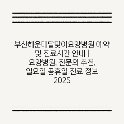 부산해운대달맞이요양병원 예약 및 진료시간 공지 | 요양병원, 전연락 추천, 일요일 공휴일 진료 정보 2025 에 대해 자주 묻는 질문 TOP 5