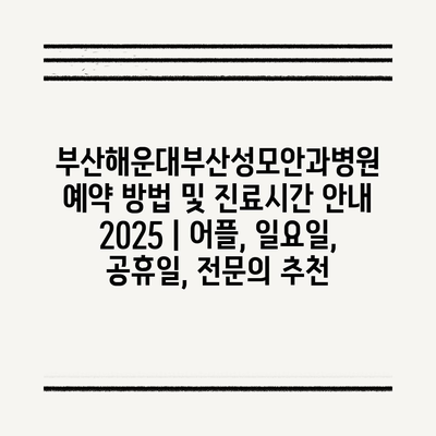 ✅ 부산 해운대 성모안과병원의 예약 방법을 상세히 알아보세요.