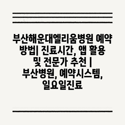 부산해운대엘리움병원 예약 방법| 진료시간, 앱 활용 및 전문가 추천 | 부산병원, 예약시스템, 일요일진료