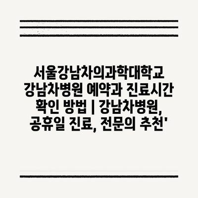 서울강남차의과학대학교 강남차병원 예약과 진료시간 확인 방법 | 강남차병원, 공휴일 진료, 전문의 추천’