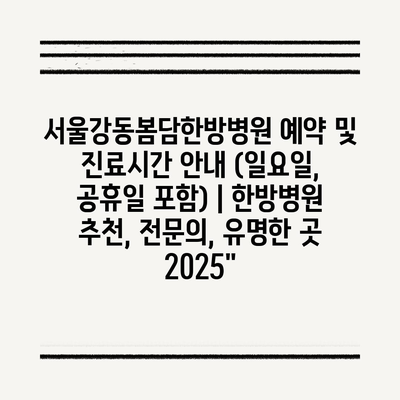 서울강동봄담한방병원 예약 및 진료시간 안내 (일요일, 공휴일 포함) | 한방병원 추천, 전문의, 유명한 곳 2025″