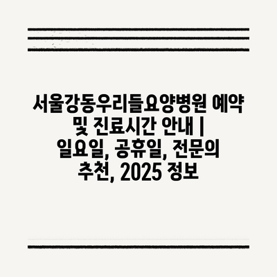 서울강동우리들요양병원 예약 및 진료시간 공지 | 일요일, 공휴일, 전연락 추천, 2025 정보 에 대해 자주 묻는 질문 TOP 5