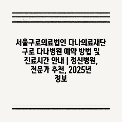 서울구로의료법인 다나의료재단 구로 다나병원 예약 방법 및 진료시간 공지 | 정신병원, 전문가 추천, 2025년 정보 에 대해 자주 묻는 질문 TOP 5