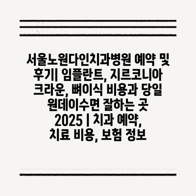 서울노원다인치과병원 예약 및 후기| 임플란트, 지르코니아 크라운, 뼈이식 비용과 당일 원데이수면 잘하는 곳 2025 | 치과 예약, 치료 비용, 보험 정보