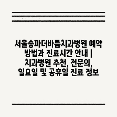 ✅ 서울송파더바름치과병원의 진료시간과 예약 방법을 알아보세요!