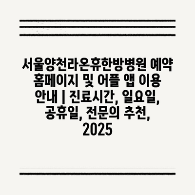 서울양천라온휴한방병원 예약 홈페이지 및 어플 앱 이용 공지 | 진료시간, 일요일, 공휴일, 전연락 추천, 2025
