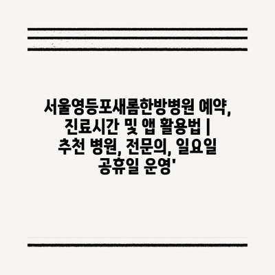 ✅ 서울영등포새롬한방병원의 예약 방법과 진료 시간을 알아보세요!