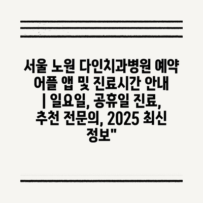 서울 노원 다인치과병원 예약 어플 앱 및 진료시간 공지 | 일요일, 공휴일 진료, 추천 전연락, 2025 최신 정보