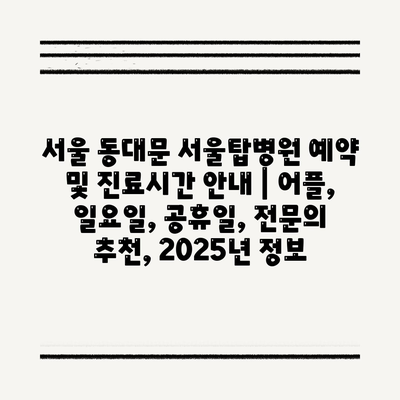 서울 동대문 서울탑병원 예약 및 진료시간 공지 | 어플, 일요일, 공휴일, 전연락 추천, 2025년 정보 에 대해 자주 묻는 질문 TOP 5