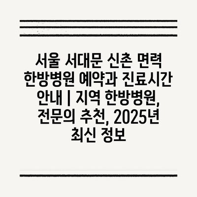 서울 서대문 신촌 면력 한방병원 예약과 진료시간 공지 | 지역 한방병원, 전연락 추천, 2025년 최신 정보 에 대해 자주 묻는 질문 TOP 5