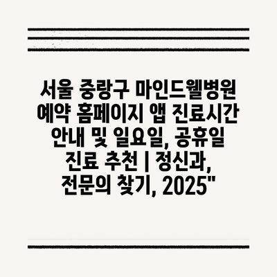 서울 중랑구 마인드웰병원 예약 홈페이지 앱 진료시간 공지 및 일요일, 공휴일 진료 추천 | 정신과, 전연락 찾기, 2025