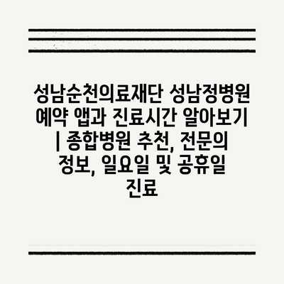 성남순천의료재단 성남정병원 예약 앱과 진료시간 알아보기 | 종합병원 추천, 전문의 정보, 일요일 및 공휴일 진료