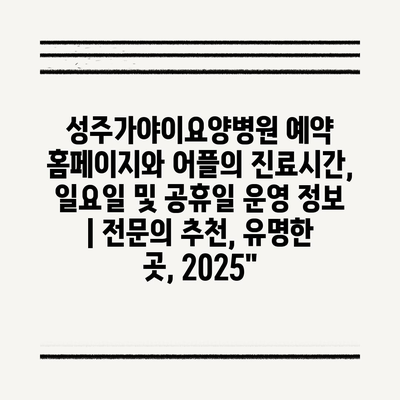 성주가야이요양병원 예약 홈페이지와 어플의 진료시간, 일요일 및 공휴일 운영 정보 | 전문의 추천, 유명한 곳, 2025″