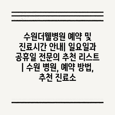 수원더웰병원 예약 및 진료시간 안내| 일요일과 공휴일 전문의 추천 리스트 | 수원 병원, 예약 방법, 추천 진료소