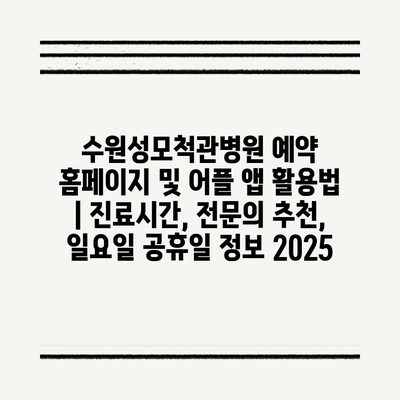 수원성모척관병원 예약 홈페이지 및 어플 앱 활용법 | 진료시간, 전연락 추천, 일요일 공휴일 정보 2025에 대해 알아보겠습니다.