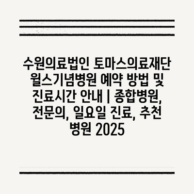 수원의료법인 토마스의료재단 윌스기념병원 예약 방법 및 진료시간 공지 | 종합병원, 전연락, 일요일 진료, 추천 병원 2025 에 대해 자주 묻는 질문 TOP 5