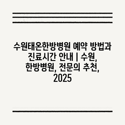수원태온한방병원 예약 방법과 진료시간 공지 | 수원, 한방병원, 전연락 추천, 2025 에 대해 자주 묻는 질문 TOP 5