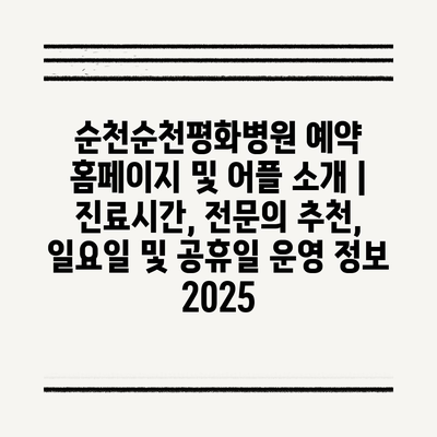 순천순천평화병원 예약 홈페이지 및 어플 소개 | 진료시간, 전문의 추천, 일요일 및 공휴일 운영 정보 2025