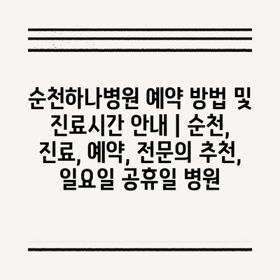 ✅ 순천하나병원의 진료시간과 예약 방법을 자세히 알아보세요.