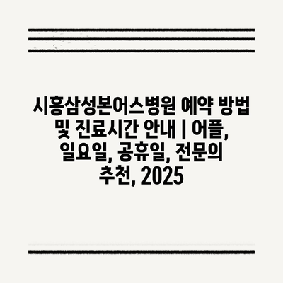 ✅ 시흥삼성본어스병원의 예약 방법과 진료시간을 간편하게 알아보세요.
