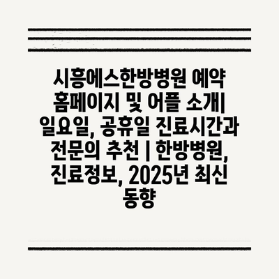 시흥에스한방병원 예약 홈페이지 및 어플 소개| 일요일, 공휴일 진료시간과 전문의 추천 | 한방병원, 진료정보, 2025년 최신 동향