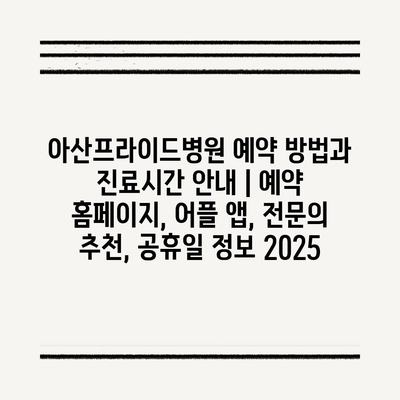 아산프라이드병원 예약 방법과 진료시간 공지 | 예약 홈페이지, 어플 앱, 전연락 추천, 공휴일 정보 2025에 대해 알아보겠습니다.