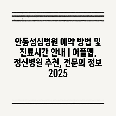 안동성심병원 예약 방법 및 진료시간 안내 | 어플앱, 정신병원 추천, 전문의 정보 2025