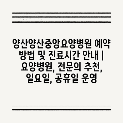 양산양산중앙요양병원 예약 방법 및 진료시간 공지 | 요양병원, 전연락 추천, 일요일, 공휴일 운영 에 대해 자주 묻는 질문 TOP 5