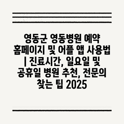 영동군 영동병원 예약 홈페이지 및 어플 앱 사용법 | 진료시간, 일요일 및 공휴일 병원 추천, 전연락 찾는 팁 2025 에 대해 자주 묻는 질문 TOP 5