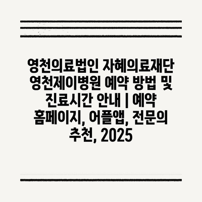 영천의료법인 자혜의료재단 영천제이병원 예약 방법 및 진료시간 공지 | 예약 홈페이지, 어플앱, 전연락 추천, 2025 에 대해 자주 묻는 질문 TOP 5