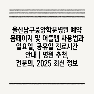 울산남구중앙학문병원 예약 홈페이지 및 어플앱 사용법과 일요일, 공휴일 진료시간 공지 | 병원 추천, 전연락, 2025 최신 정보 에 대해 자주 묻는 질문 TOP 5