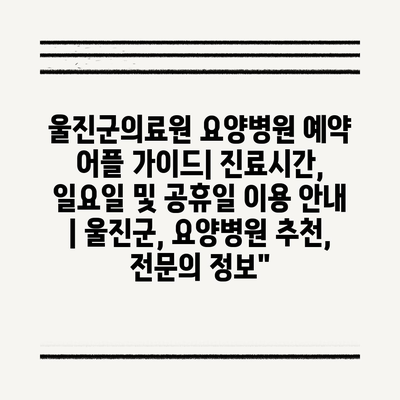 ✅ 울진군의료원 요양병원 예약 앱 사용 방법을 지금 바로 알아보세요.