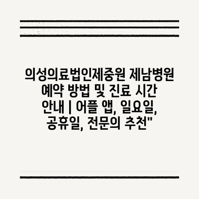 ✅ 의성의료법인제중원 제남병원 예약 방법을 지금 바로 알아보세요!