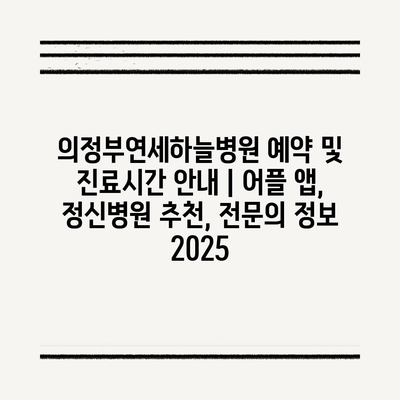 의정부연세하늘병원 예약 및 진료시간 안내 | 어플 앱, 정신병원 추천, 전문의 정보 2025