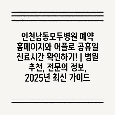 인천남동모두병원 예약 홈페이지와 어플로 공휴일 진료시간 확인하기! | 병원 추천, 전연락 정보, 2025년 최신 설명서 에 대해 자주 묻는 질문 TOP 5
