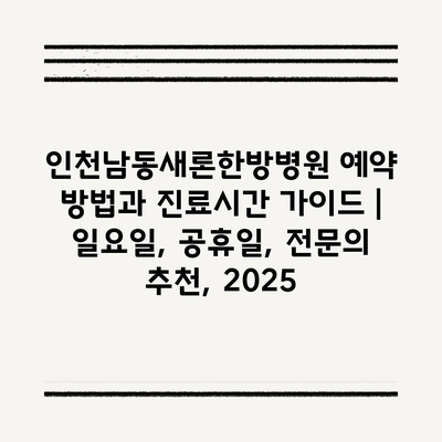 인천남동새론한방병원 예약 방법과 진료시간 설명서 | 일요일, 공휴일, 전연락 추천, 2025에 대해 알아보겠습니다.