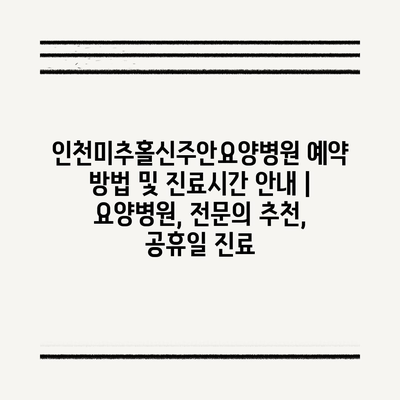 ✅ 인천미추홀신주안요양병원의 예약 방법과 진료시간을 지금 바로 알아보세요!