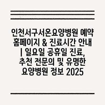 ✅ 인천서구서온요양병원 예약 방법과 진료시간을 자세히 알아보세요.