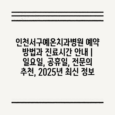 인천서구예온치과병원 예약 방법과 진료시간 공지 | 일요일, 공휴일, 전연락 추천, 2025년 최신 정보에 대해 자주 묻는 질문 TOP 5