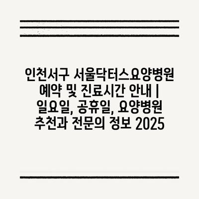 인천서구 서울닥터스요양병원 예약 및 진료시간 안내 | 일요일, 공휴일, 요양병원 추천과 전문의 정보 2025