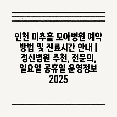 인천 미추홀 모아병원 예약 방법 및 진료시간 공지 | 정신병원 추천, 전연락, 일요일 공휴일 운영정보 2025 에 대해 자주 묻는 질문 TOP 5