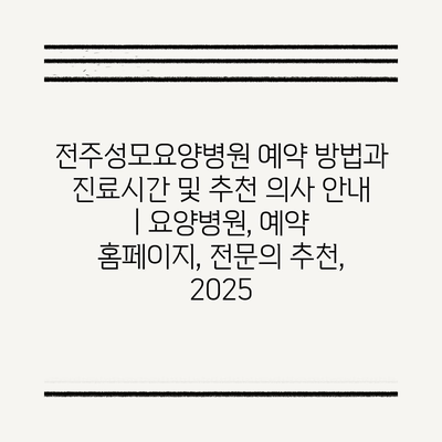 전주성모요양병원 예약 방법과 진료시간 및 추천 의사 공지 | 요양병원, 예약 홈페이지, 전연락 추천, 2025 에 대해 자주 묻는 질문 TOP 5