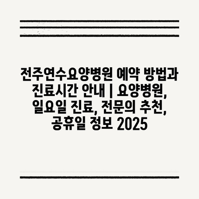 전주연수요양병원 예약 방법과 진료시간 공지 | 요양병원, 일요일 진료, 전연락 추천, 공휴일 정보 2025 에 대해 자주 묻는 질문 TOP 5